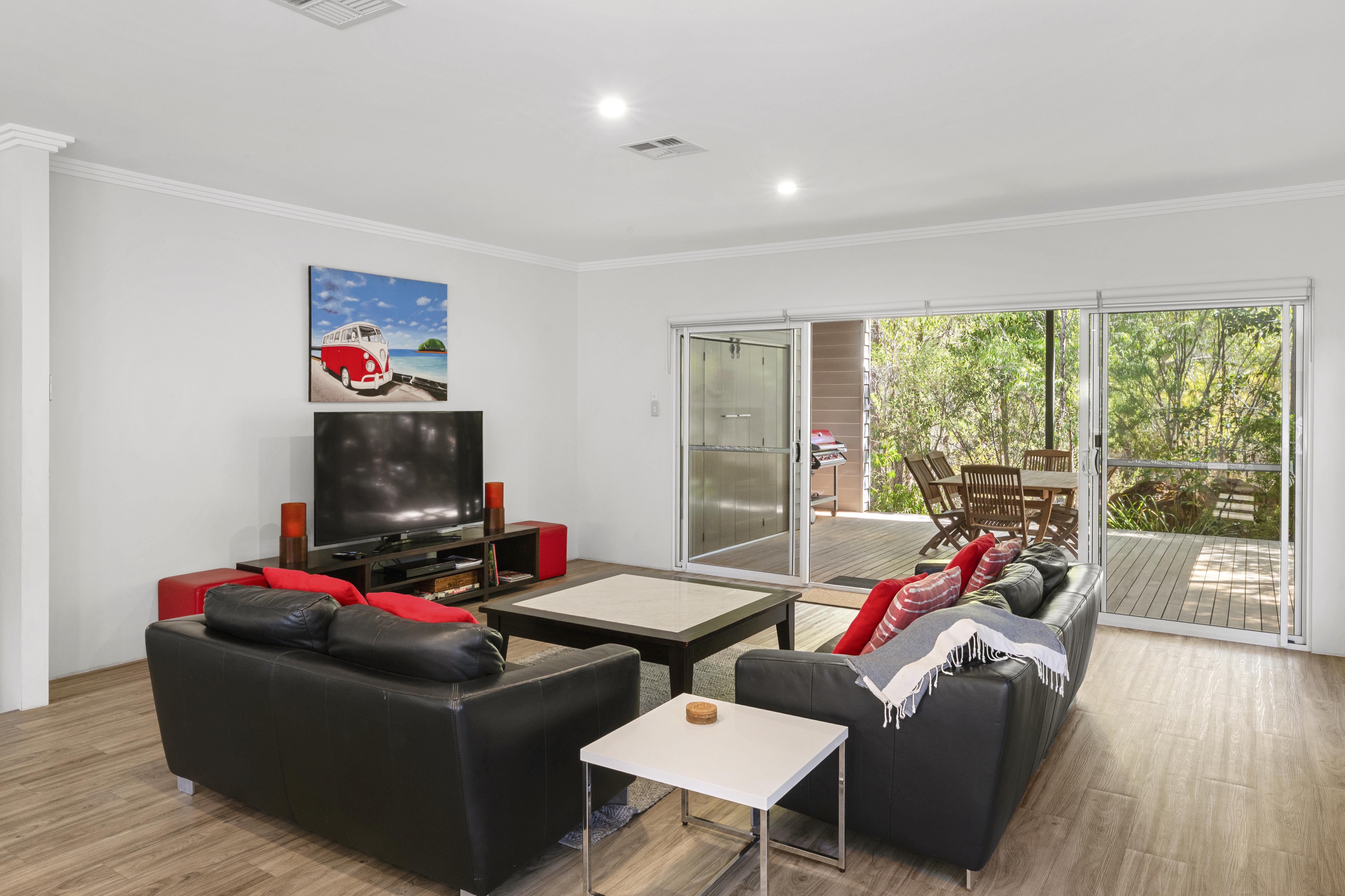 Modern two bedroom two bathroom villa, boasts plenty of space to move, the villa has ducted reverse cycle air-conditioning through out NOW with Guest WiFi