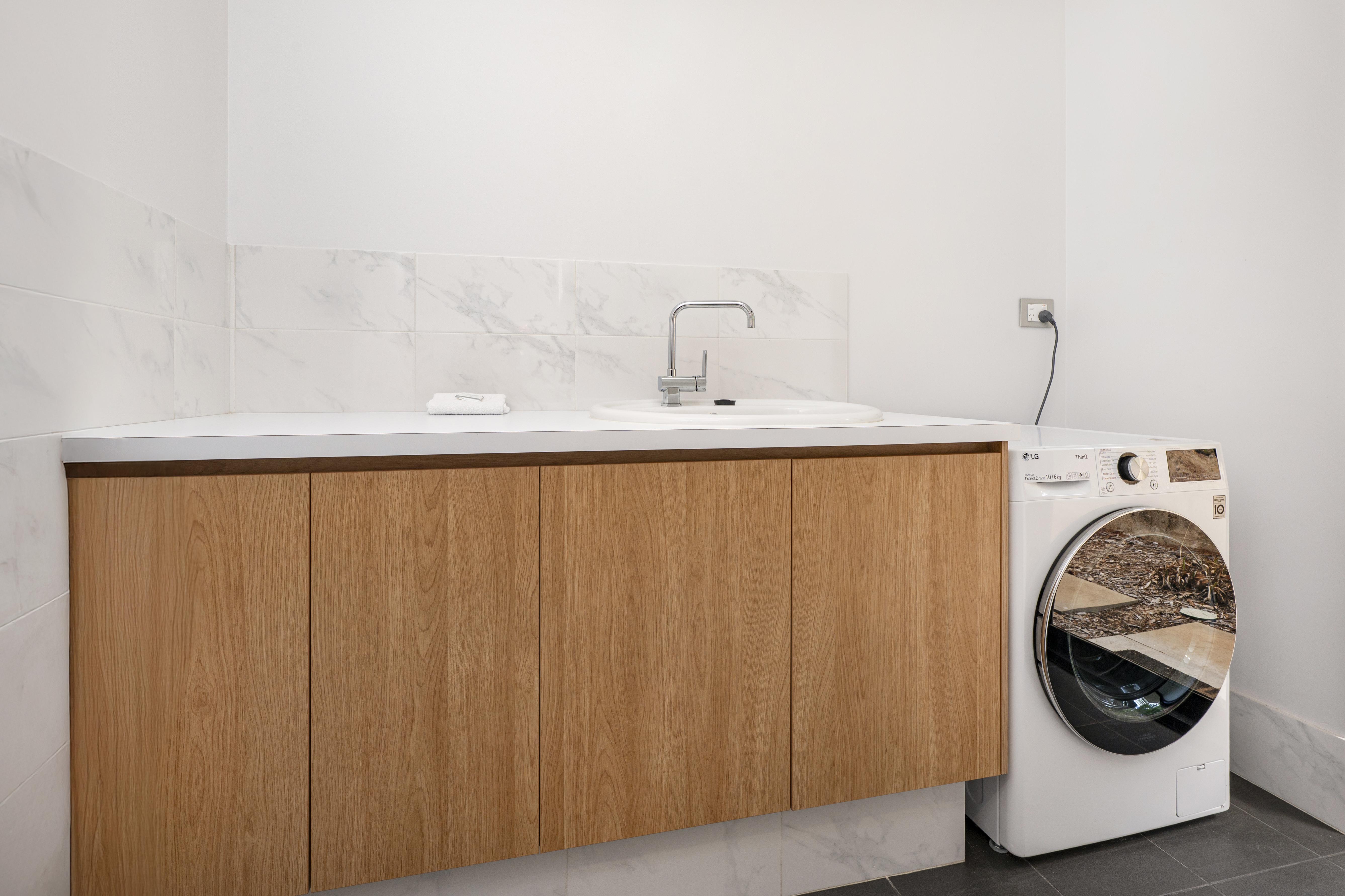 The modern, galley style kitchen centres around the large island bench that offers breakfast bar facilities. Stone benchtops, plenty of storage & stainless-steel appliances will ensure entertaining is a breeze.